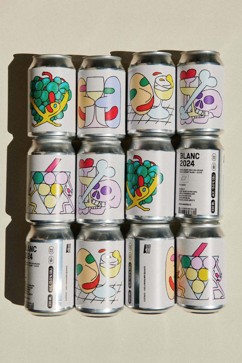 Unikátní projekt vznikl z naší potřeby přinést na trh živé víno v menším, friendly formátu. 100% Cabernet Blanc z biodynamických vinic z Kutné Hory. Víno jsme si naplnili do plechovek sami, přímo ve vinařství a je doplněno o 5 různých ilustrací od Adély Bierbaumer a design Marka Fanty. Šarže 100 kusů od jedné etikety a za nás žhavý tip na dárek i osvěžení. Objem 0,33l alias tři sklenky vína je něco, co můžete pít sami nebo sdílet s přáteli. Na zdraví!
